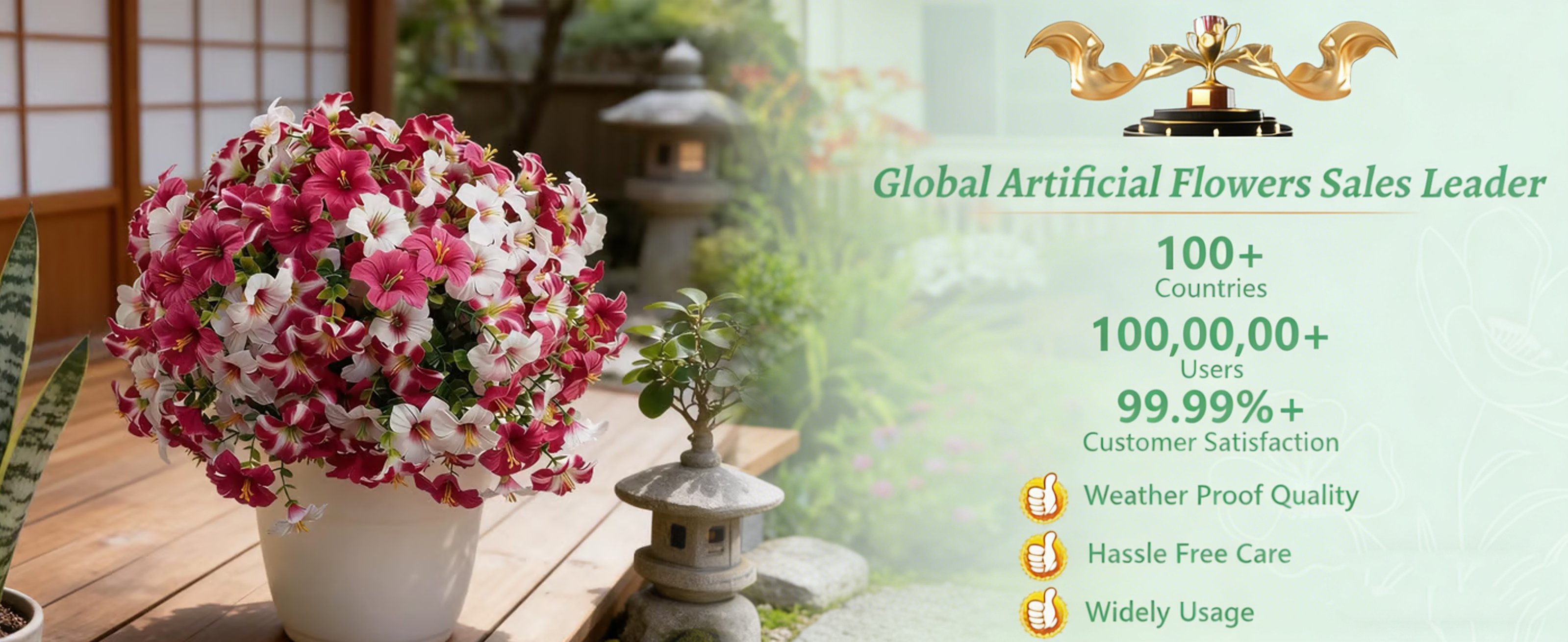 These ultra-realistic artificial flowers are designed to look fresh all year round, instantly transforming your home, garden, or balcony into a blooming paradise.