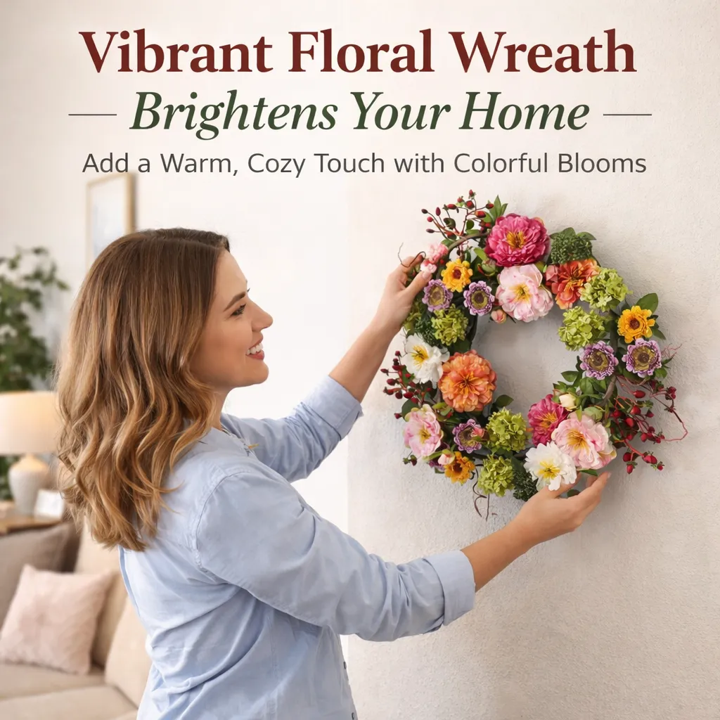 Whether hung on your front door, wall, window, or above a fireplace, this wreath creates a warm, welcoming atmosphere that feels both stylish and timeless.