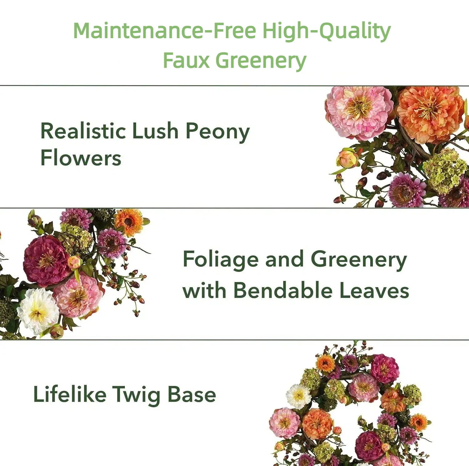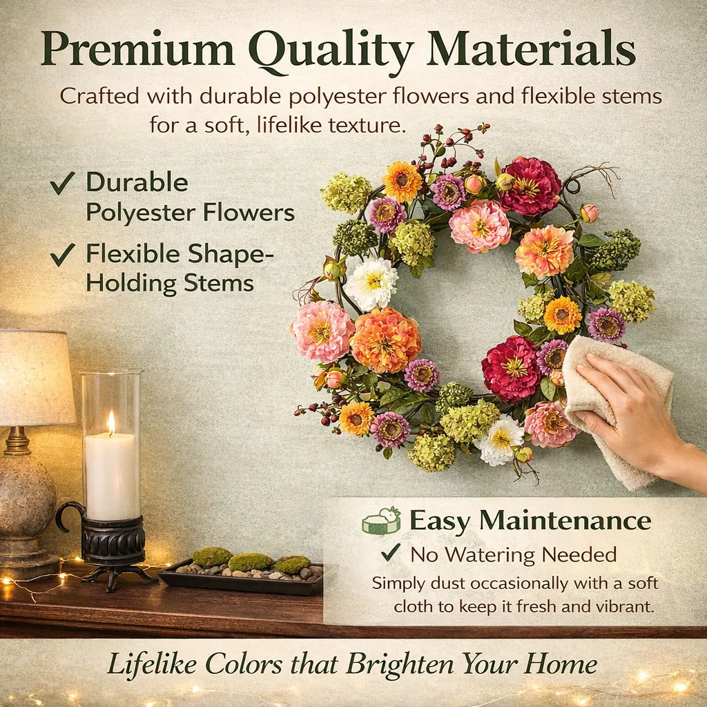 No watering or upkeep needed. Simply dust occasionally with a soft cloth to keep the wreath looking fresh and vibrant.
