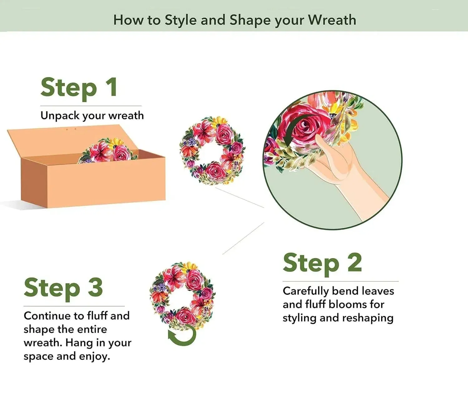 1️⃣ Remove the wreath from packaging.