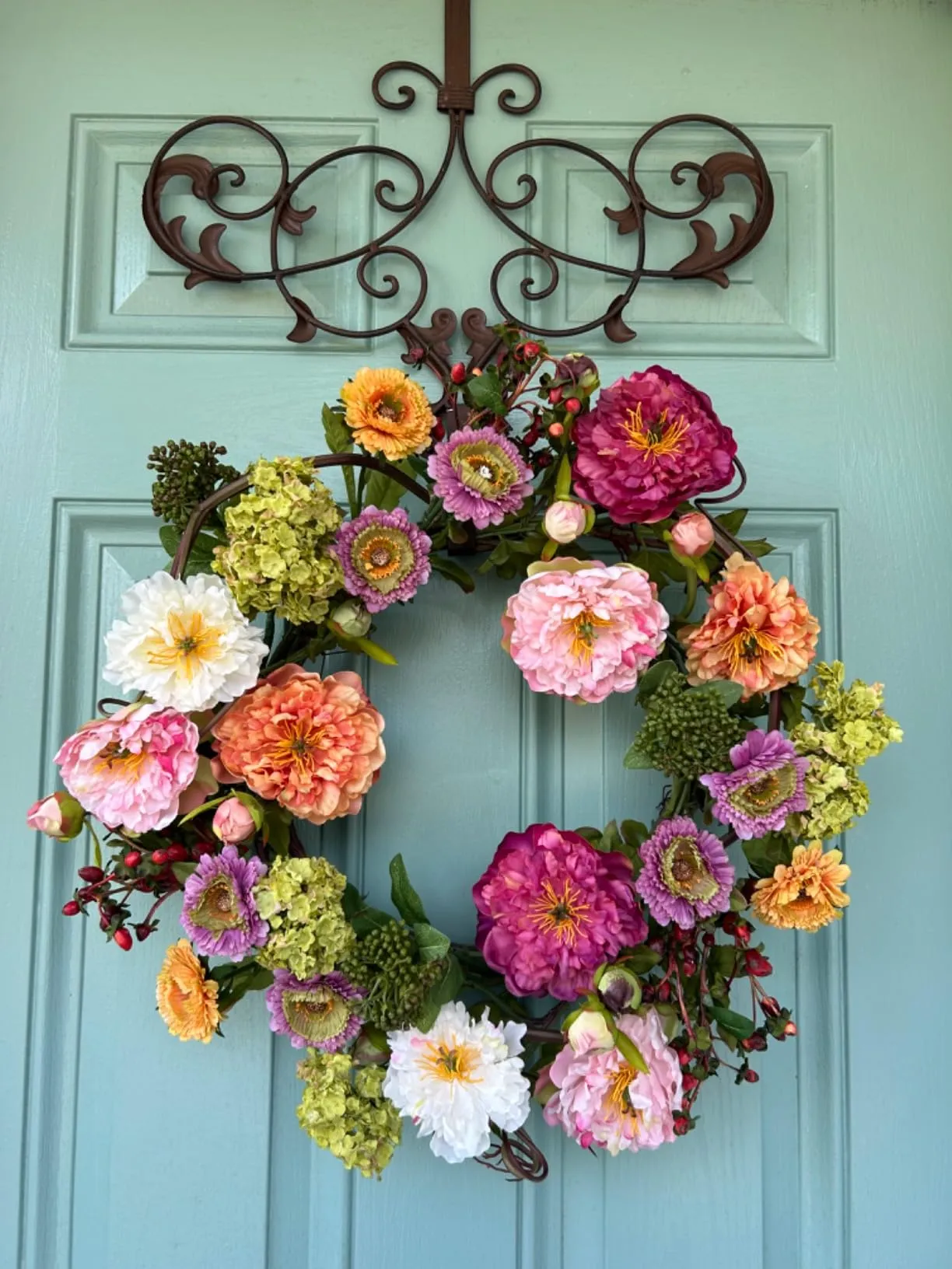 Looking for an easy way to refresh your front door, entryway, or living space? This 24-inch mixed peony wreath brings soft elegance and vibrant charm to any home. Designed with a stunning blend of pastel peonies, rich greenery, and delicate berry accents, it instantly becomes the focal point of any space.