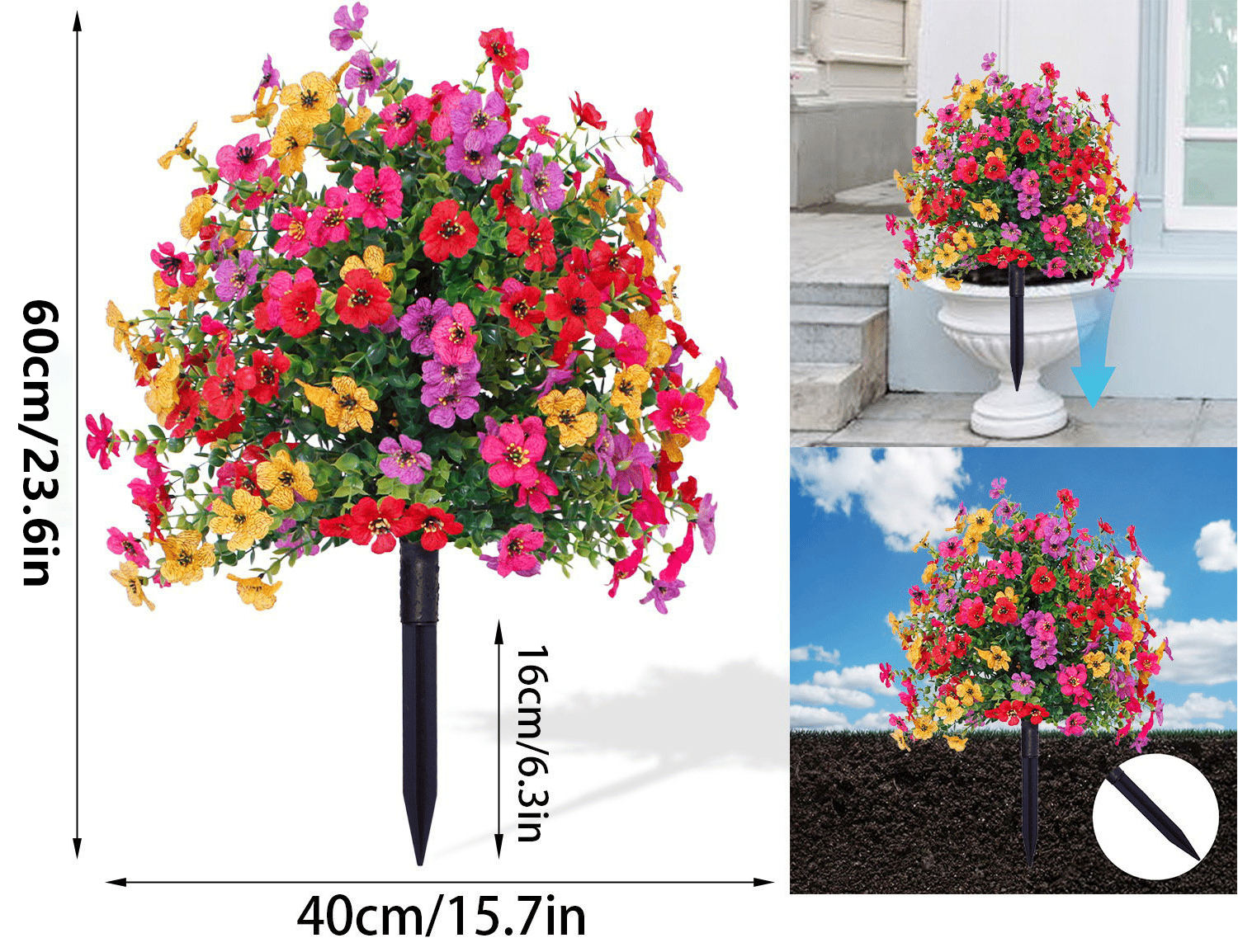 After unpacking, fluff and attach the ground spike, then insert into soil—no tools required. Instantly beautify your space.